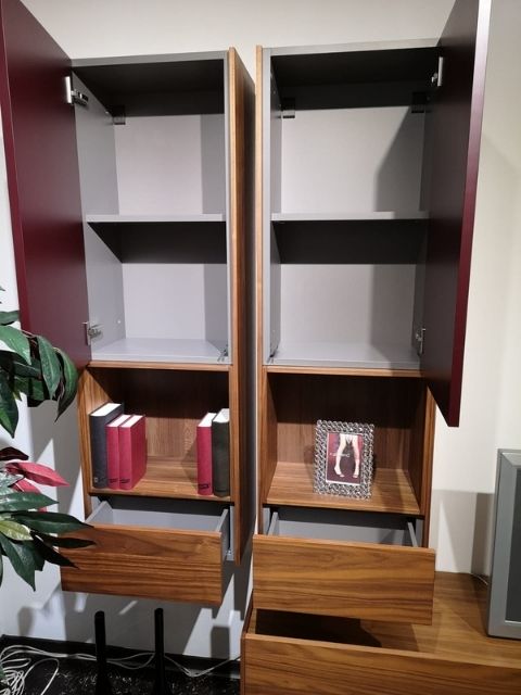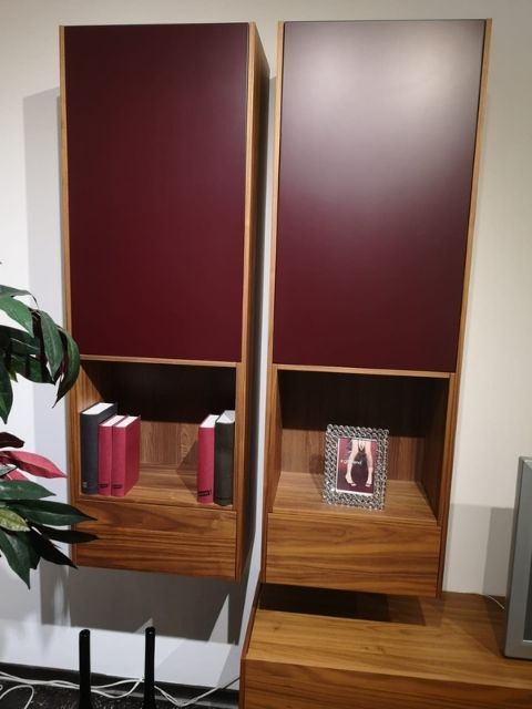 Mòduls penjats, acabat amb fusta de noguera i laca mate 45 x 32 f x 130 h